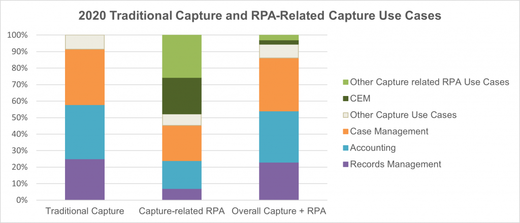 Other Capture-related RPA use cases include Sales and Marketing support, most frequently Contact Center applications, which intersect with the adjacent Customer Experience Management (CEM) market.